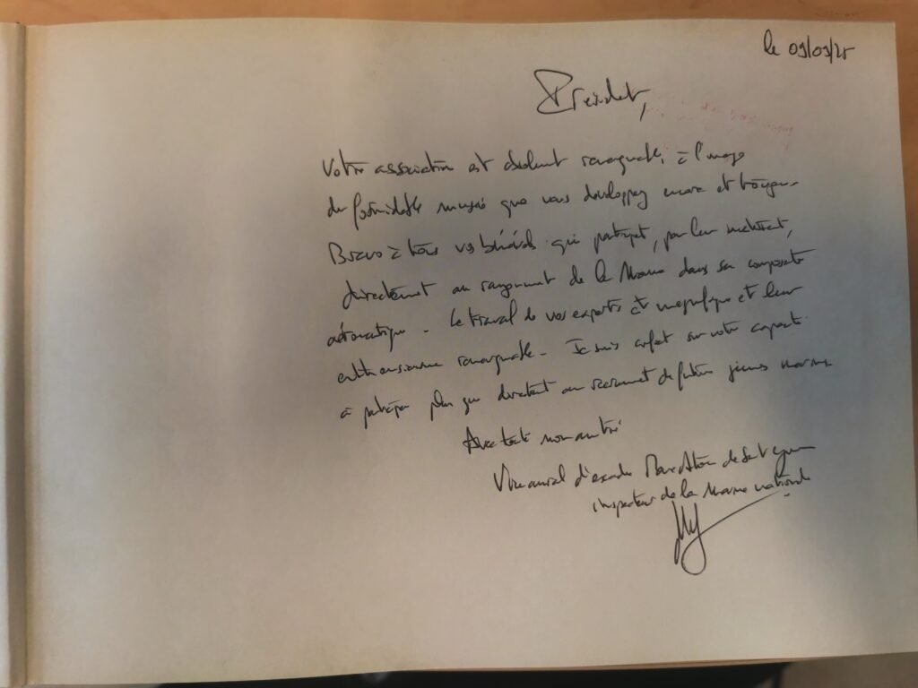 A l’issue de la visite l’Amiral nous à offert un très joli livre avec une dédicace très sympathique et encourageante pour nos bénévoles.